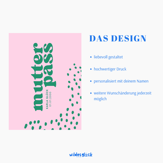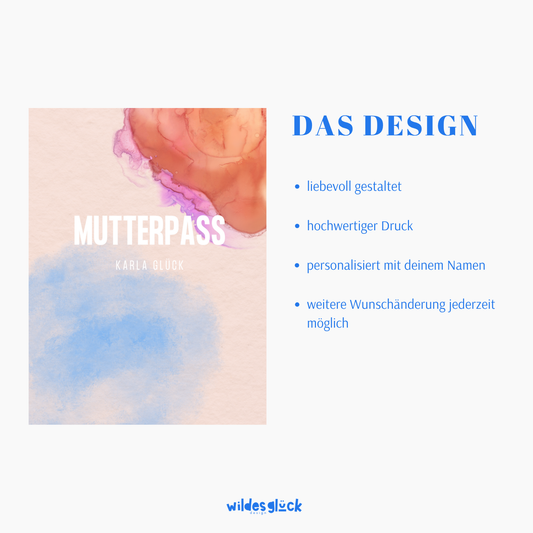 Der Mutterpass wird dabei zu deinem täglichen Begleiter. In ihm findest du alle wichtigen Informationen zu deiner Schwangerschaft und deinem Baby. Damit er immer geschützt ist und lange schön bleibt, bieten wir dir eine personalisierte Mutterpasshülle an, die perfekt zu dir passt.