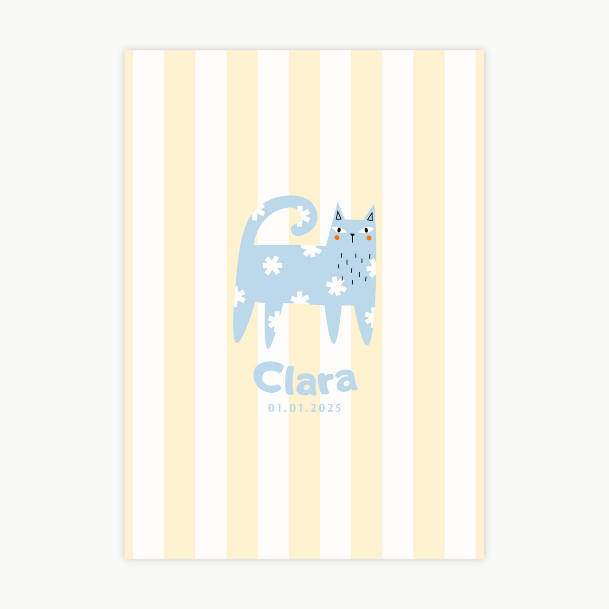 Unsere bunten Kinderposter werden mit viel Liebe gestaltet und können ganz einfach mit dem Namen deines Kindes personalisiert werden – auf Wunsch auch mit Geburtsdatum oder einem kleinen Extra-Detail. Das wunderschöne Katzen-Motiv, bringen Wärme und Freude ins Kinderzimmer und schaffen eine besondere Wohlfühlatmosphäre.