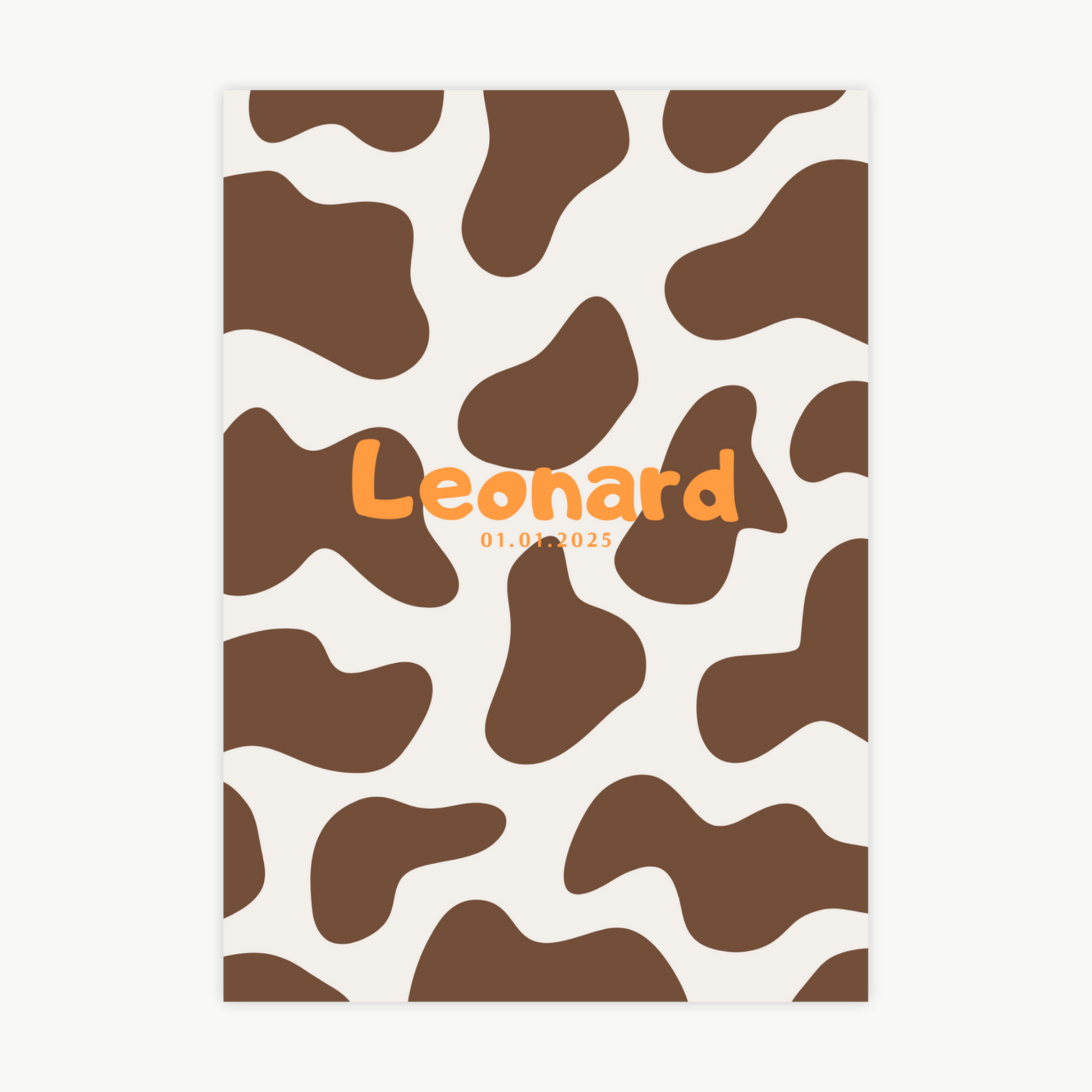 Unsere bunten Kinderposter werden mit viel Liebe gestaltet und können ganz einfach mit dem Namen deines Kindes personalisiert werden – auf Wunsch auch mit Geburtsdatum oder einem kleinen Extra-Detail. Das wunderschöne Kuh-Motiv, bringen Wärme und Freude ins Kinderzimmer und schaffen eine besondere Wohlfühlatmosphäre.